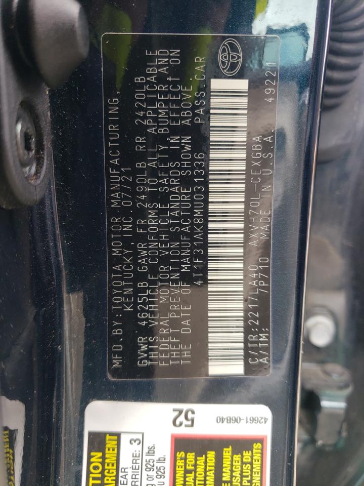 TOYOTA CAMRY 2.5 2021 р.в., (4T1F31AK8MU031336) з США