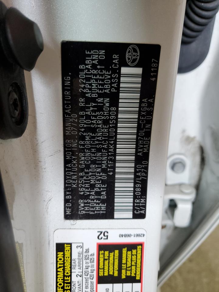 TOYOTA CAMRY 2.5 2020 р.в., (4T1F31AK4LU015908) з США