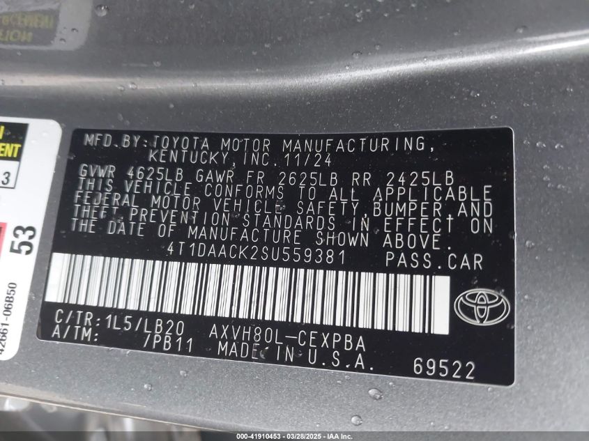 TOYOTA CAMRY 2.5 2025 р.в., Передній привід (4T1DAACK2SU559381) з США