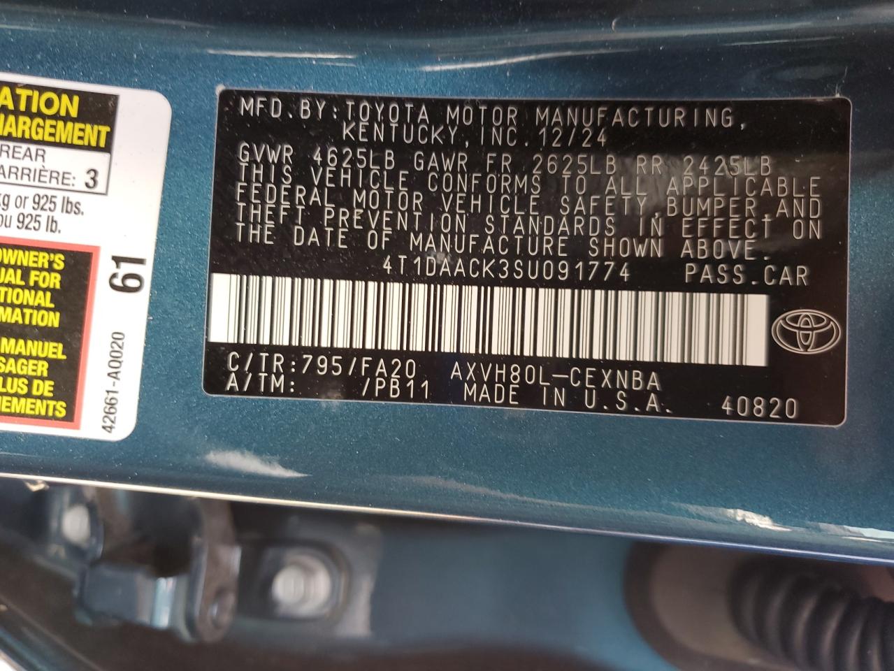 TOYOTA CAMRY 2.5 2025 р.в., (4T1DAACK3SU091774) з США