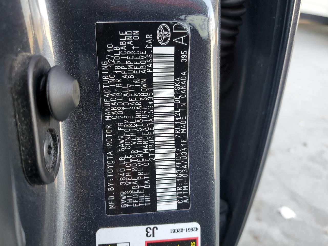 TOYOTA COROLLA 1.8 2010 р.в., (2T1BU4EE1AC534351) з США