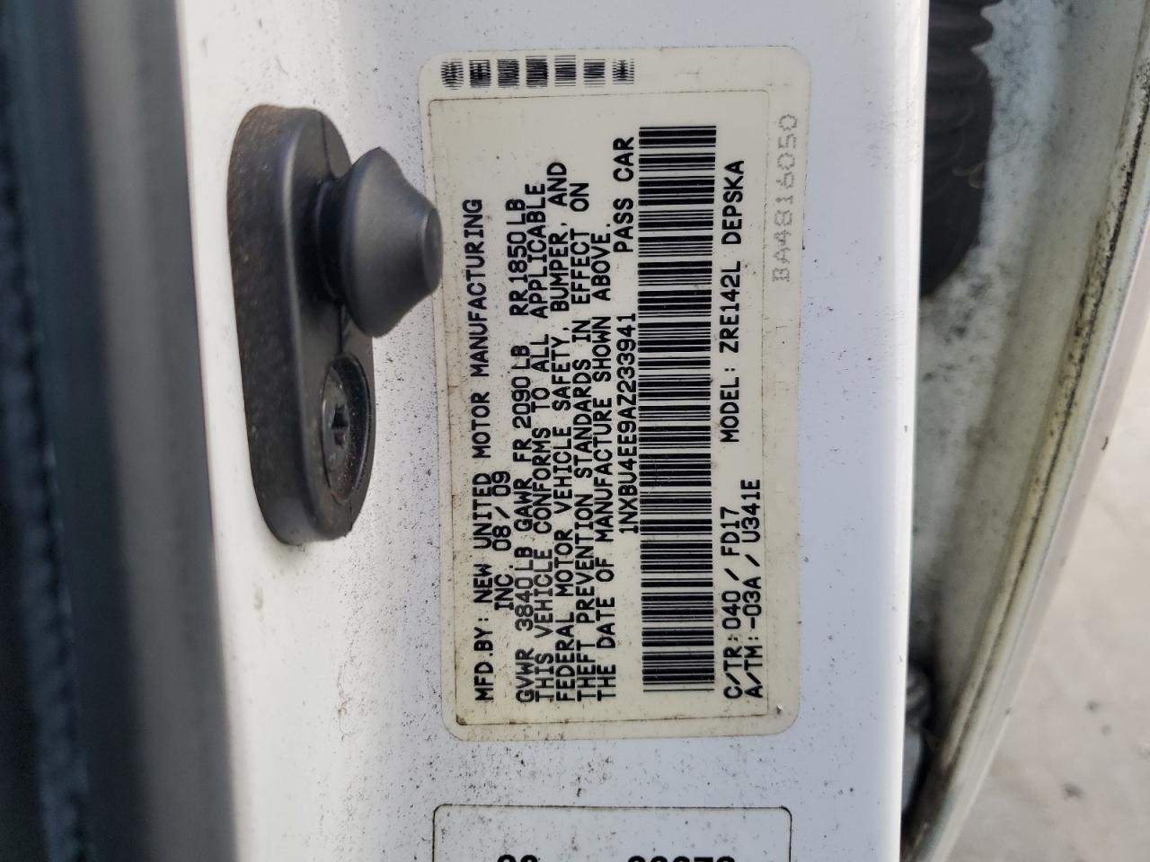 Колір БілийЦиліндри 4VIN 1NXBU4EE9AZ233941Стан НевідомоУшкодження Задня