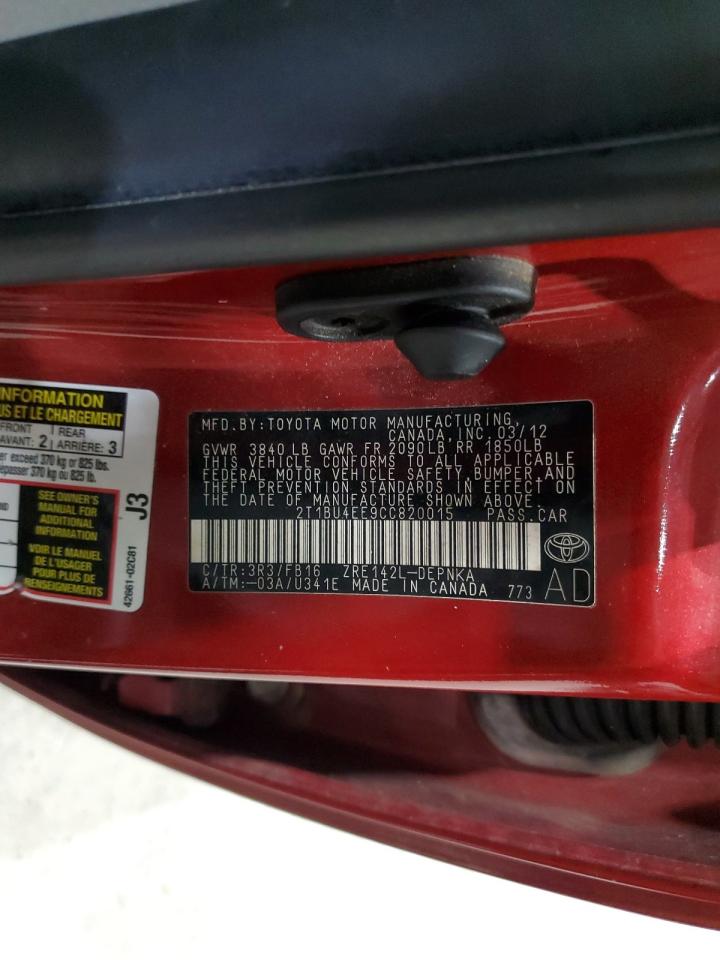 TOYOTA COROLLA 1.8 2012 р.в., (2T1BU4EE9CC820015) з США