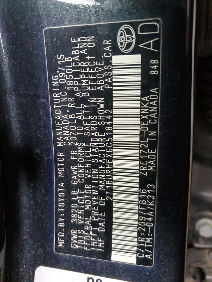 TOYOTA COROLLA 1.8 2016 р.в., (2T1BURHEXGC518442) з США