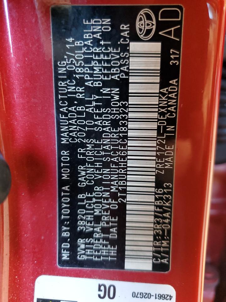 TOYOTA COROLLA 1.8 2014 р.в., (2T1BURHE6EC183323) з США