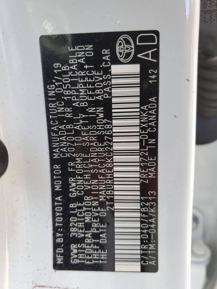 TOYOTA COROLLA 1.8 2019 р.в., (2T1BURHE8KC227687) з США