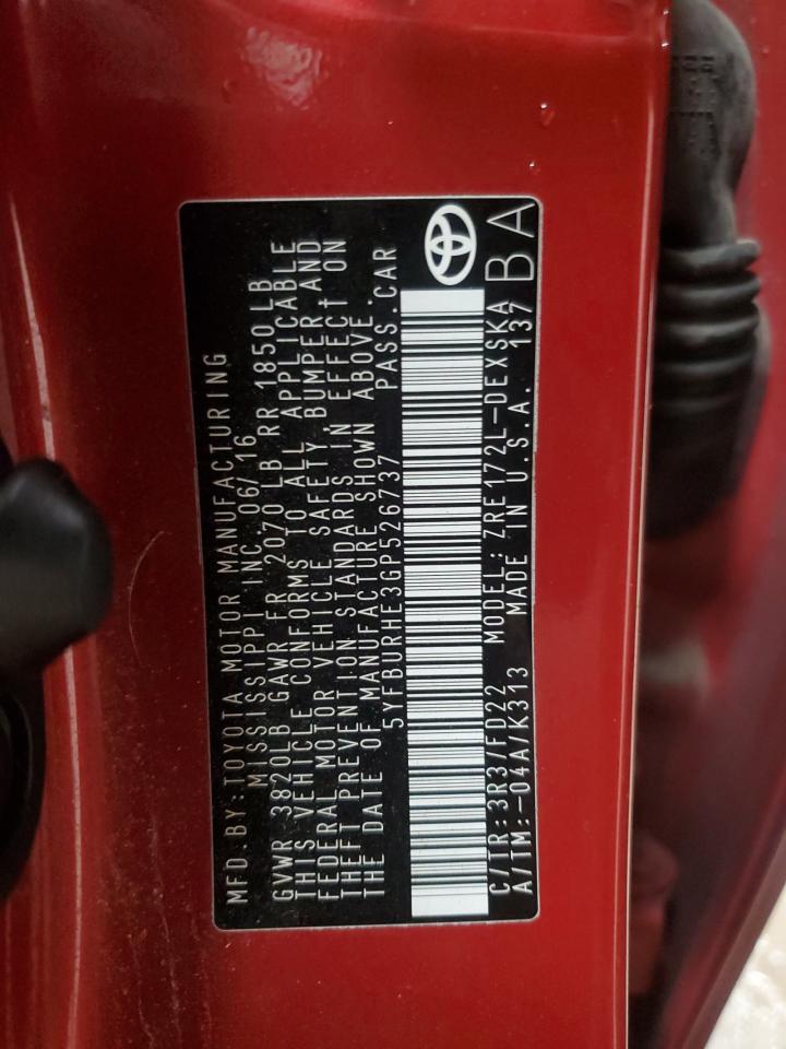 Колір БургундіяЦиліндри 4VIN 5YFBURHE3GP526737Стан НевідомоУшкодження Передня або задня