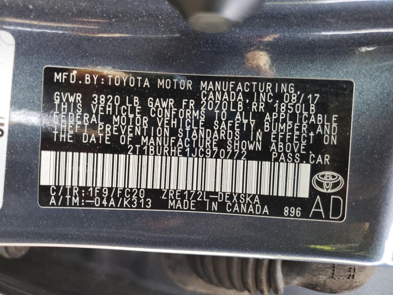 TOYOTA COROLLA 1.8 2018 р.в., (2T1BURHE1JC970772) з США