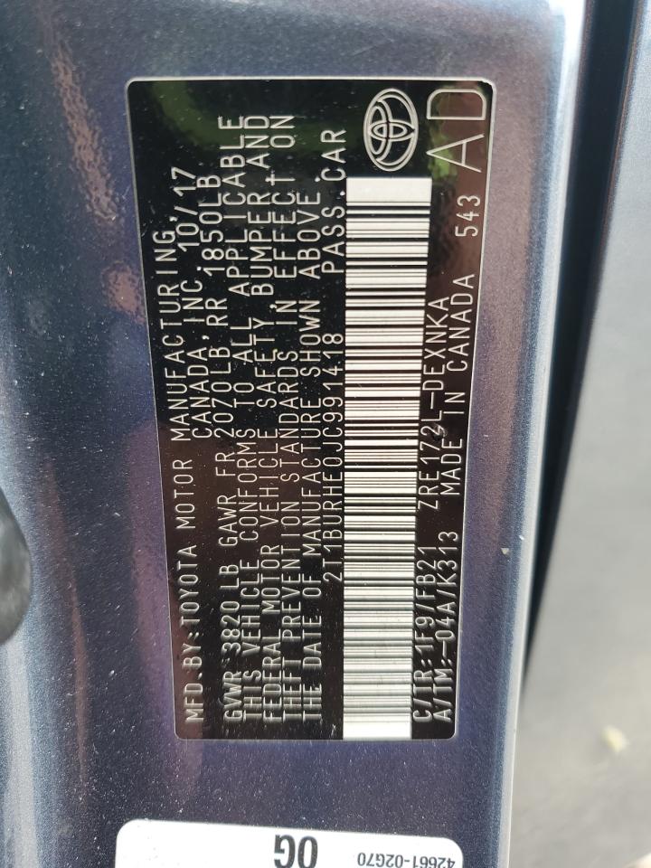 TOYOTA COROLLA 1.8 2018 р.в., (2T1BURHE0JC991418) з США