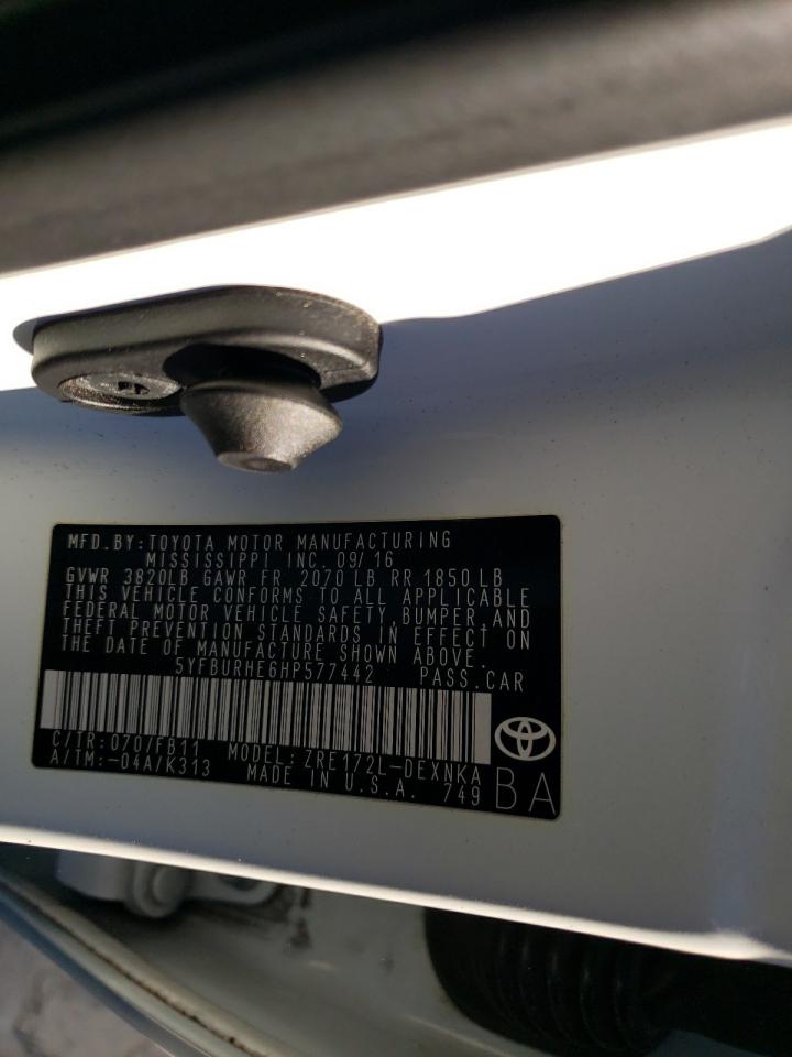 TOYOTA COROLLA 1.8 2017 р.в., (5YFBURHE6HP577442) з США