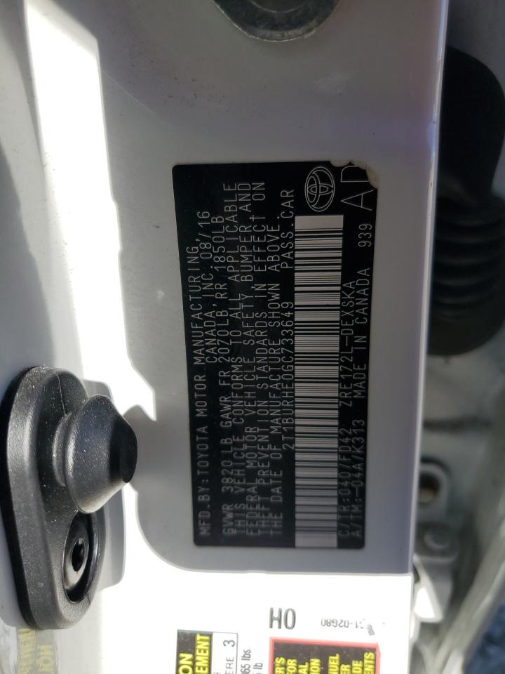 TOYOTA COROLLA 1.8 2016 р.в., (2T1BURHE0GC733649) з США