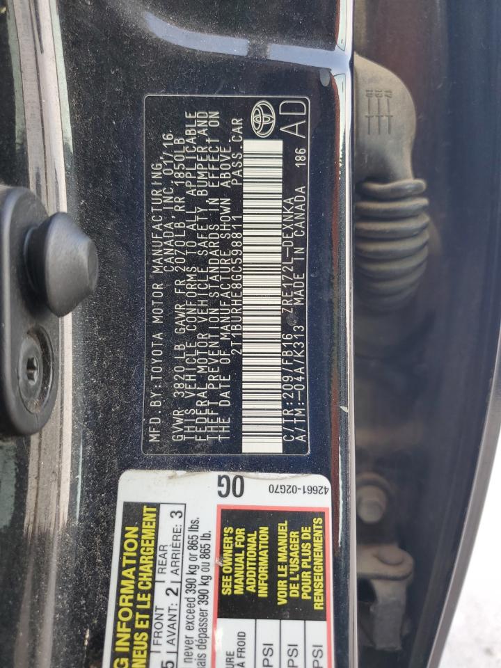 Колір ЧорнийЦиліндри 4VIN 2T1BURHE8GC598811Стан НевідомоУшкодження Передня або задня