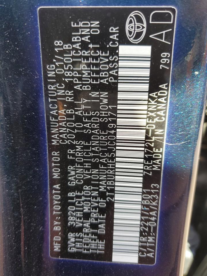 TOYOTA COROLLA 1.8 2018 р.в., (2T1BURHE5JC049171) з США