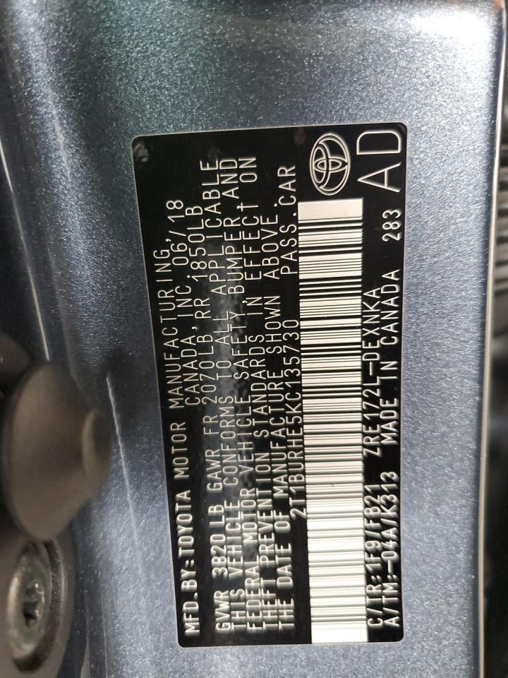 TOYOTA COROLLA 1.8 2019 р.в., (2T1BURHE5KC135730) з США