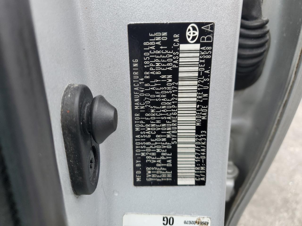 TOYOTA COROLLA 1.8 2014 р.в., (5YFBURHE6EP127172) з США