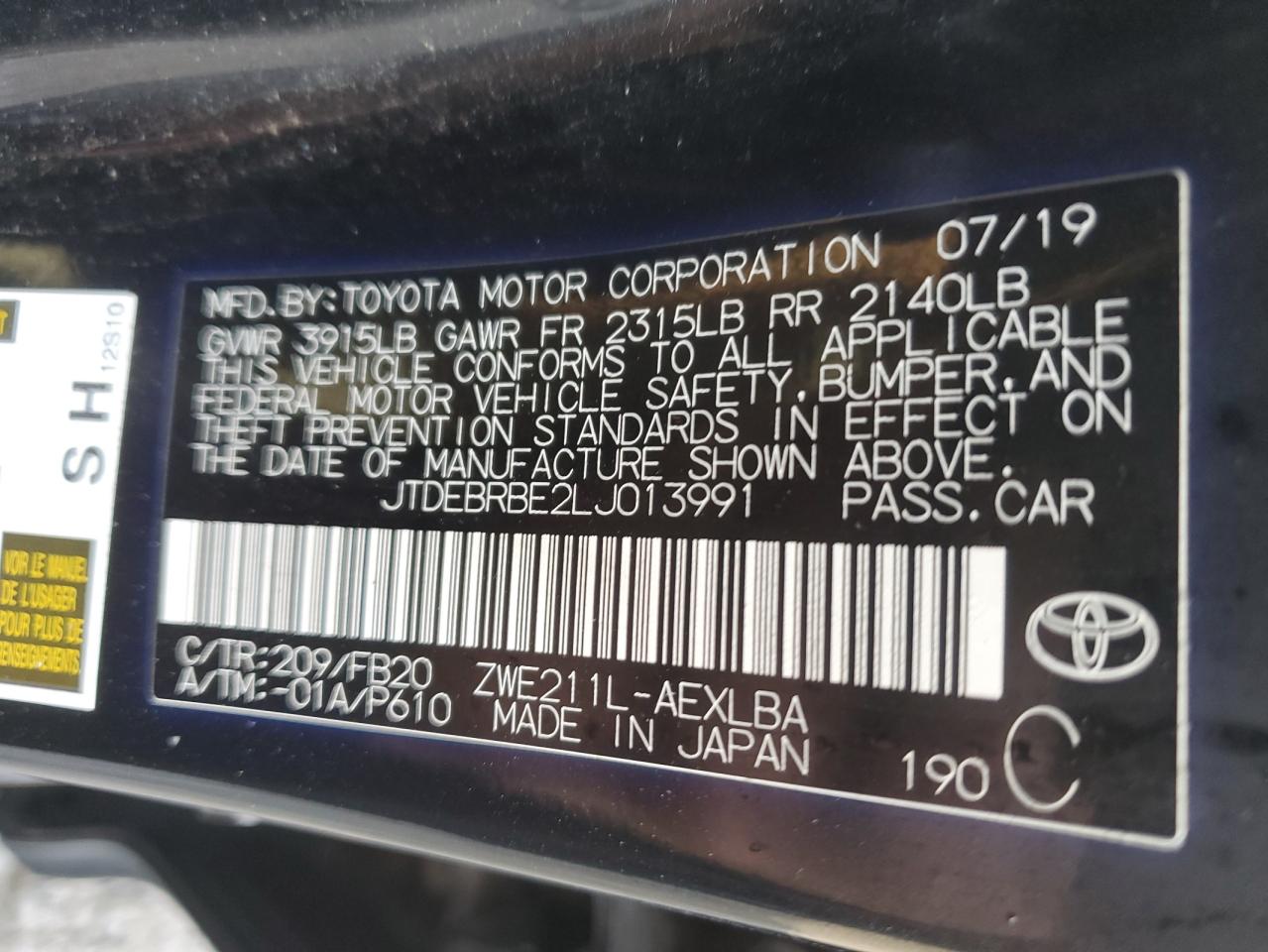 Колір Деревне вугілляЦиліндри 4VIN JTDEBRBE2LJ013991Стан Заводиться та їде (перевірено)Ушкодження Задня