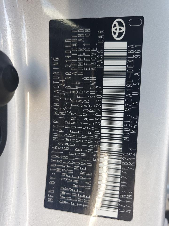 Колір СрібнийЦиліндри 4VIN 5YFB4MDE3SP233017Стан Заводиться та їде (перевірено)Ушкодження Передня або задняДата аукціону 2025-11-03