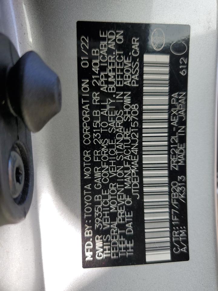 Колір СрібнийЦиліндри 4VIN JTDEPMAE4NJ215708Стан НевідомоУшкодження Передня або задня
