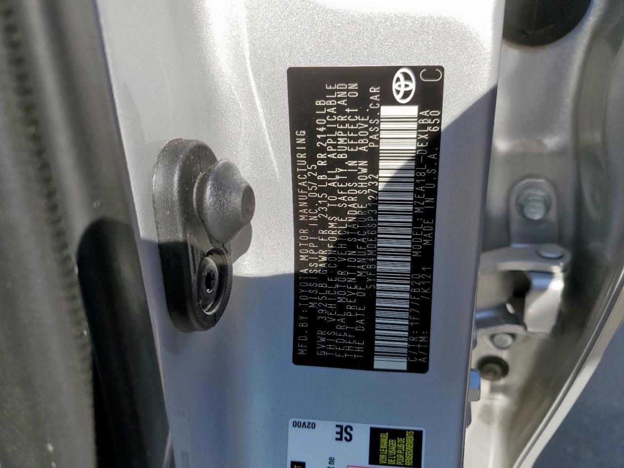 Колір СрібнийЦиліндри 4VIN 5YFB4MDE6SP312732Стан ЗаводитьсяУшкодження Передня або задняДата аукціону 2025-11-03