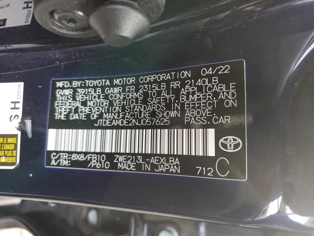 Колір СинійЦиліндри 4VIN JTDEAMDE2NJ057625Стан Заводиться та їде (перевірено)Ушкодження Задня