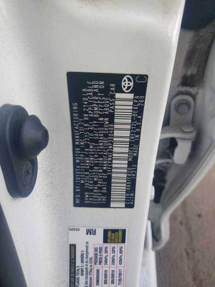 Колір БілийЦиліндри 4VIN 5YFEPMAE3NP300468Стан Заводиться та їде (перевірено)Ушкодження Передня або задня
