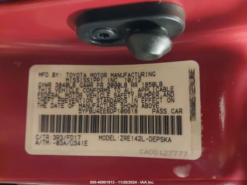 Колір ЧервонийЦиліндри 4Привід Передній привідVIN 5YFBU4EE6DP106618Стан СтаціонарноУшкодження Ліва сторона