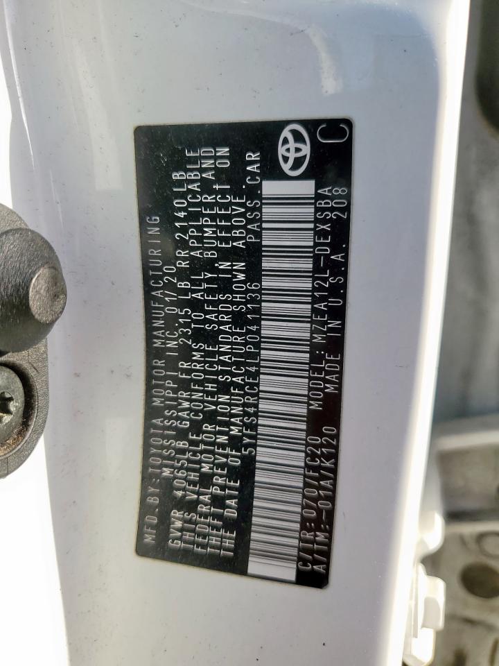 Колір БілийЦиліндри 4VIN 5YFS4RCE4LP041136Стан ЗаводитьсяУшкодження З боківДата аукціону 2025-11-04