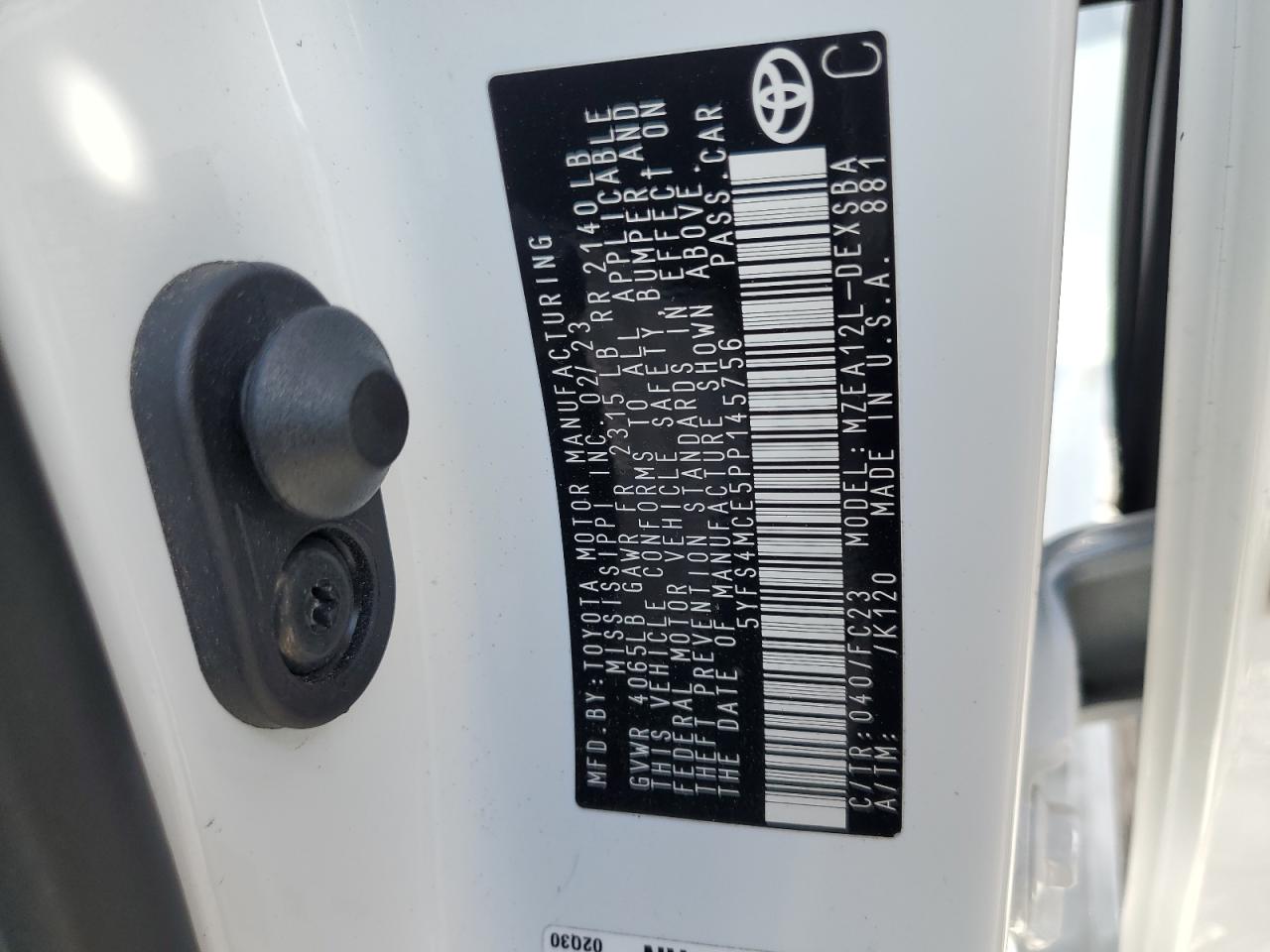 Колір БілийЦиліндри 4VIN 5YFS4MCE5PP145756Стан НевідомоУшкодження Передня або задня