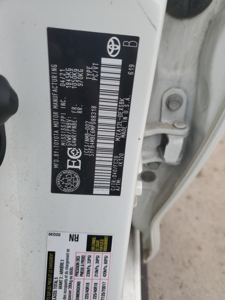 Колір БілийЦиліндри 4VIN 5YFB4MBE6MP088318Стан НевідомоУшкодження Передня або задня