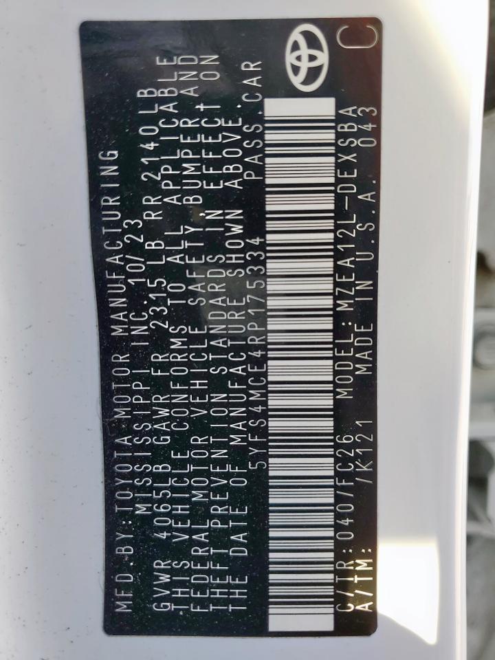 Колір БілийЦиліндри 4VIN 5YFS4MCE4RP175334Стан НевідомоУшкодження З боків