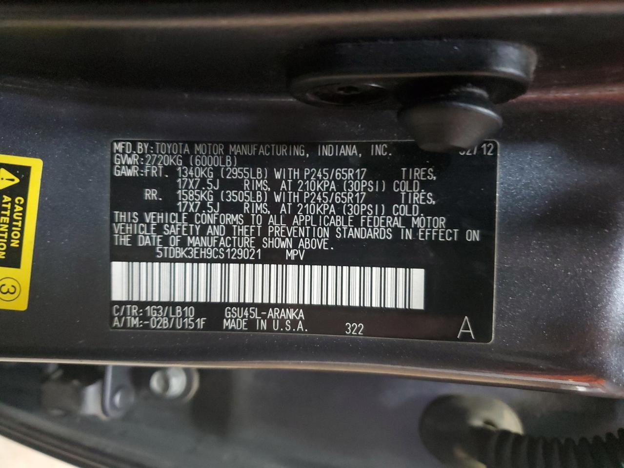 TOYOTA HIGHLANDER 3.5 2012 р.в., Повний привід (5TDBK3EH9CS129021) з США