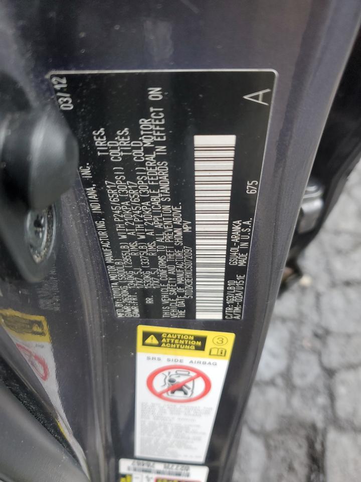 TOYOTA HIGHLANDER 3.5 2012 р.в., (5TDZK3EHXCS072097) з США