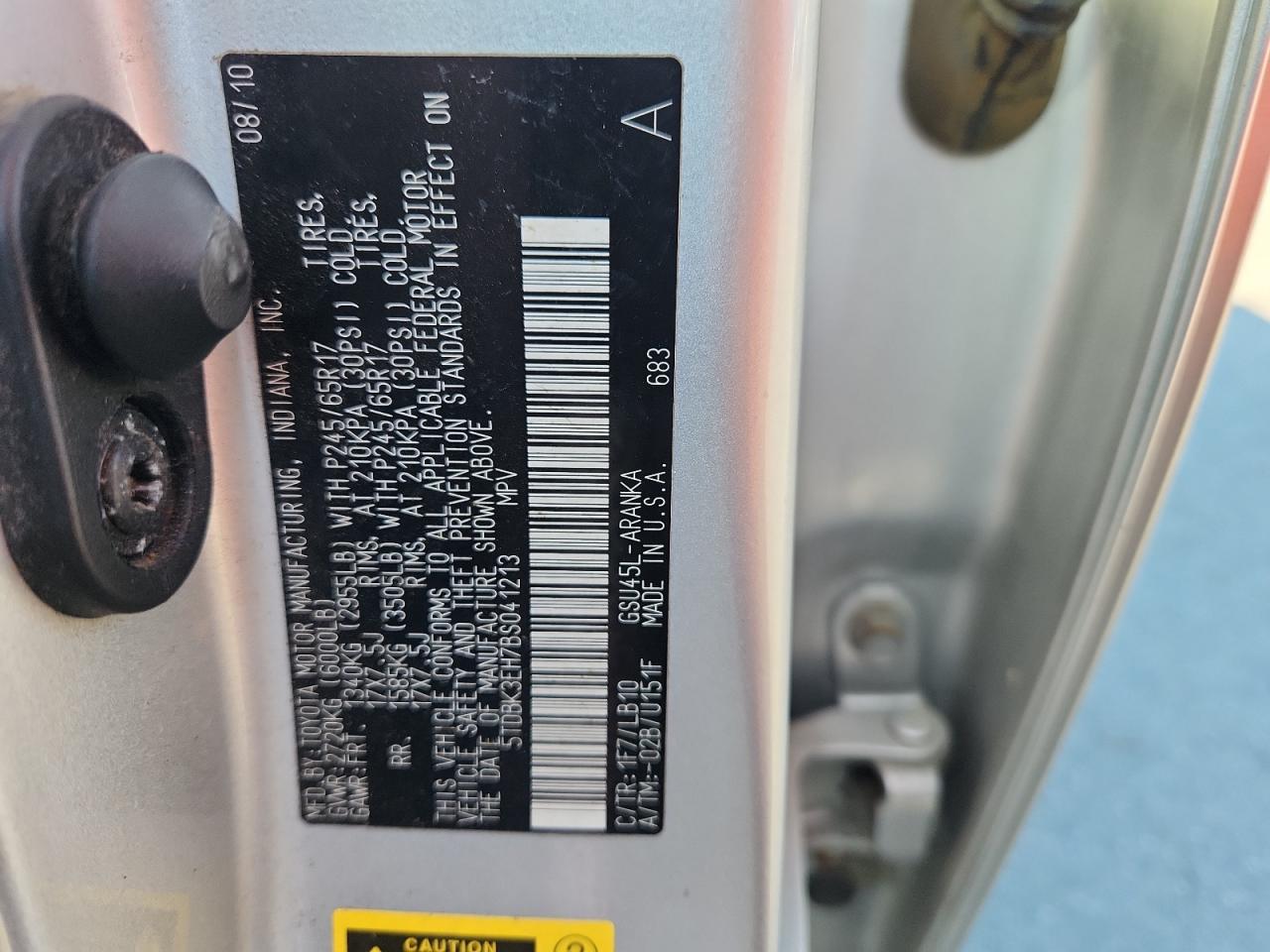 Колір СрібнийЦиліндри 6Привід Повний привідVIN 5TDBK3EH7BS041213Стан Заводиться та їде (перевірено)Ушкодження Передня або задня