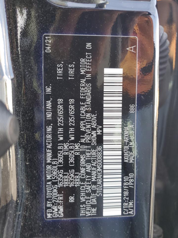 TOYOTA HIGHLANDER 2.5 2021 р.в., (5TDZARAH3MS008836) з США