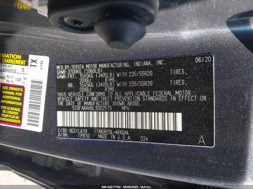2020 TOYOTA HIGHLANDER LIMITED