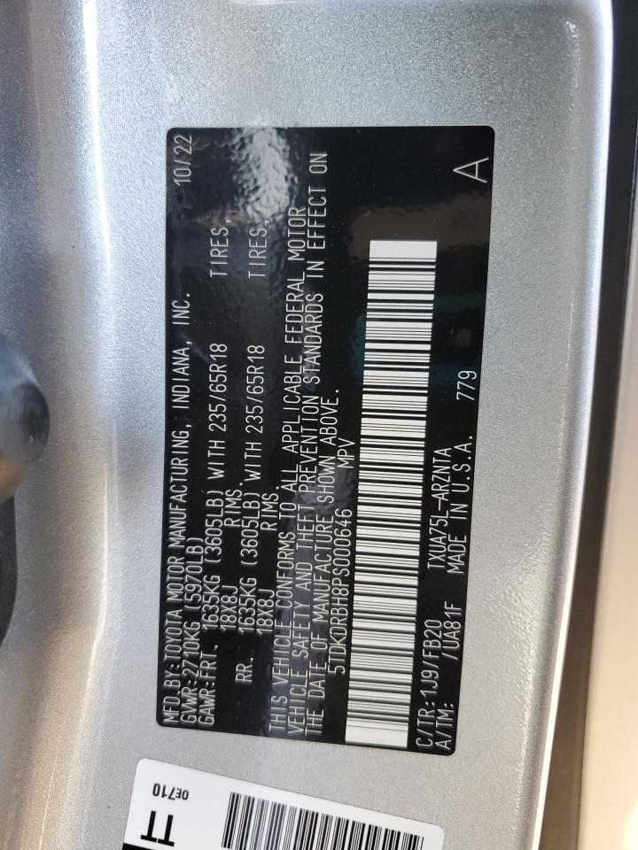 Колір СрібнийЦиліндри 4Привід Повний привідVIN 5TDKDRBH8PS000646Стан НевідомоУшкодження З боків