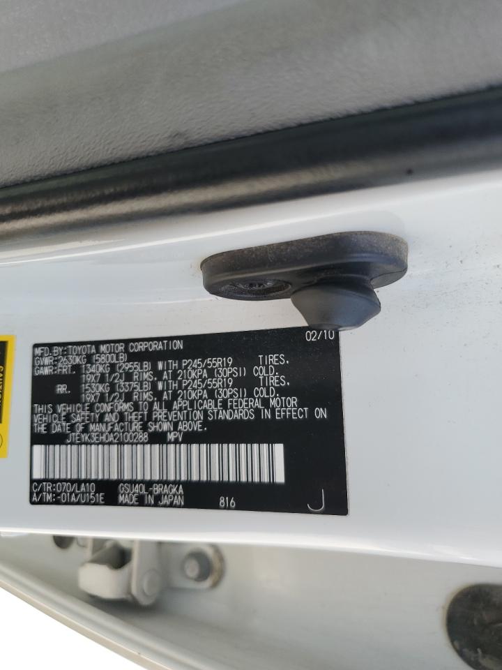 TOYOTA HIGHLANDER 3.5 2010 р.в., (JTEYK3EH0A2100288) з США
