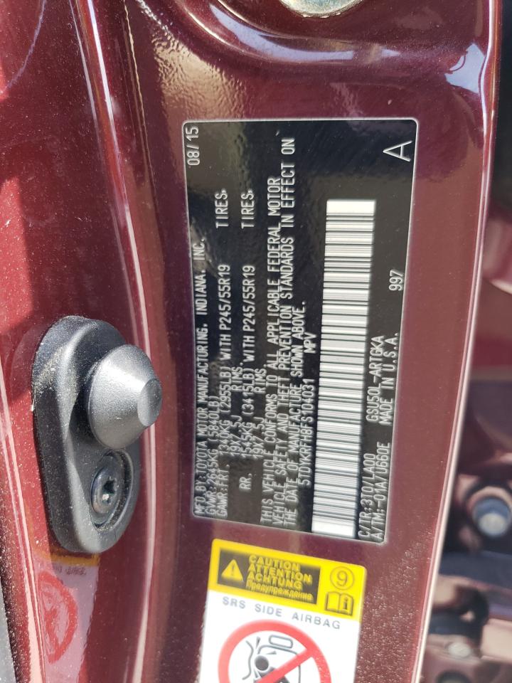Колір БургундіяЦиліндри 6VIN 5TDYKRFH8FS104031Стан НевідомоУшкодження Передня або задня