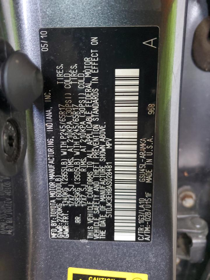 TOYOTA HIGHLANDER 3.5 2010 р.в., Повний привід (5TDJK3EH8AS028481) з США