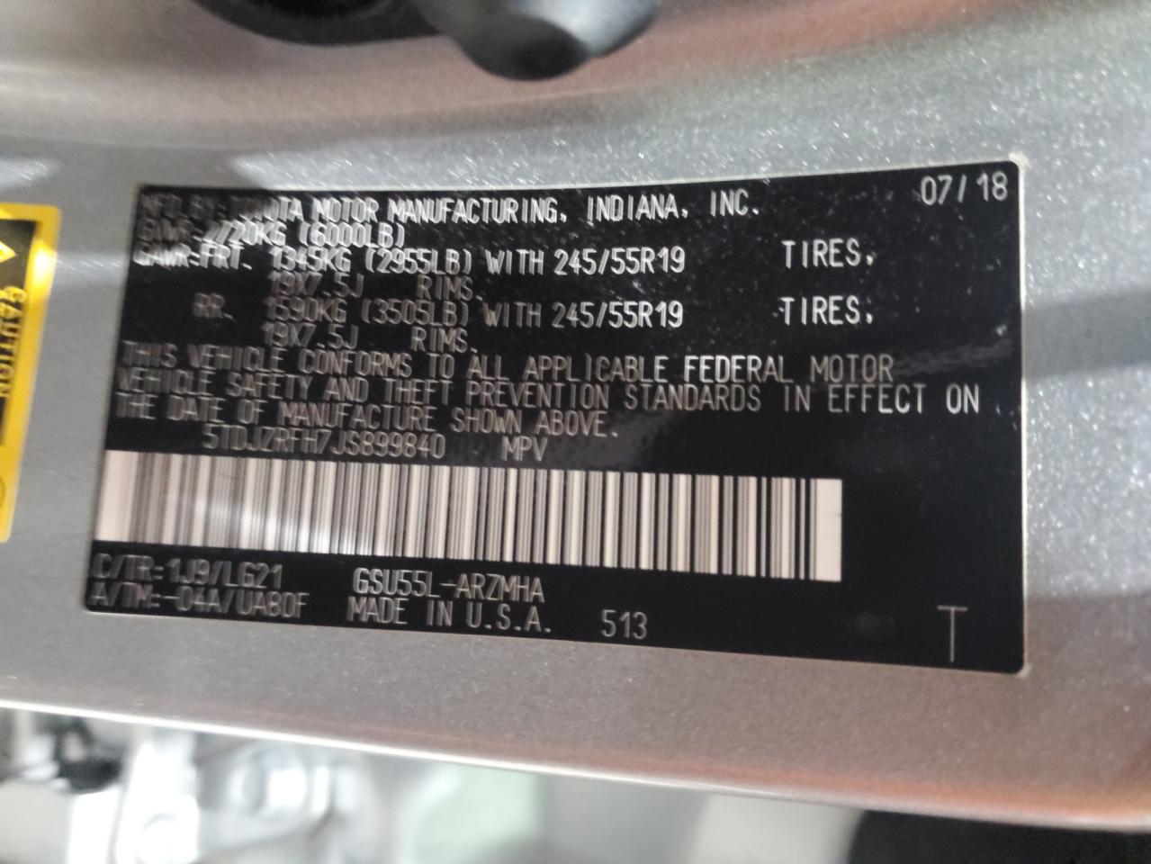 Колір СрібнийЦиліндри 6Привід Повний привідVIN 5TDJZRFH7JS899840Стан НевідомоУшкодження Передня або задня