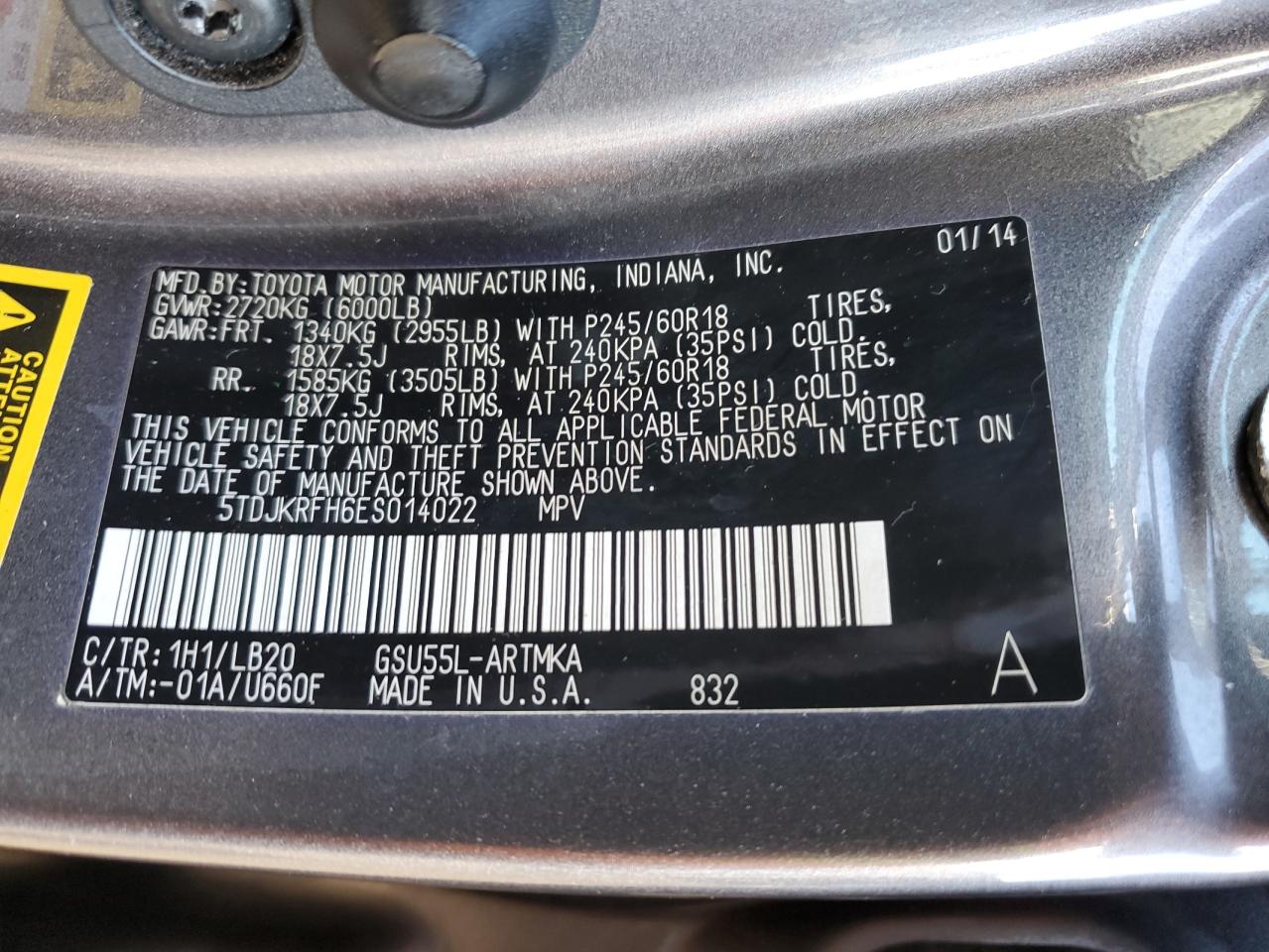 Колір СірийЦиліндри 6Привід Повний привідVIN 5TDJKRFH6ES014022Стан Заводиться та їде (перевірено)Ушкодження ЗадняДата аукціону 2025-11-04
