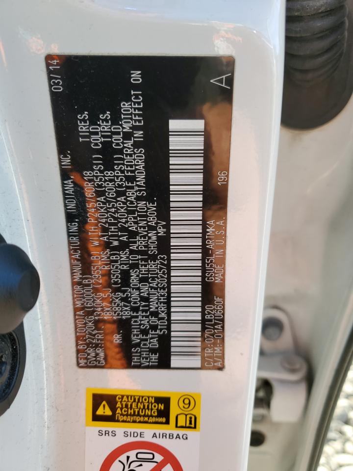 TOYOTA HIGHLANDER 3.5 2014 р.в., Повний привід (5TDJKRFH3ES025723) з США