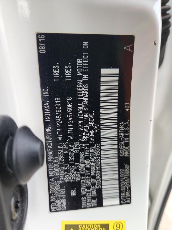 TOYOTA HIGHLANDER 3.5 2016 р.в., Повний привід (5TDJKRFH3GS319562) з США