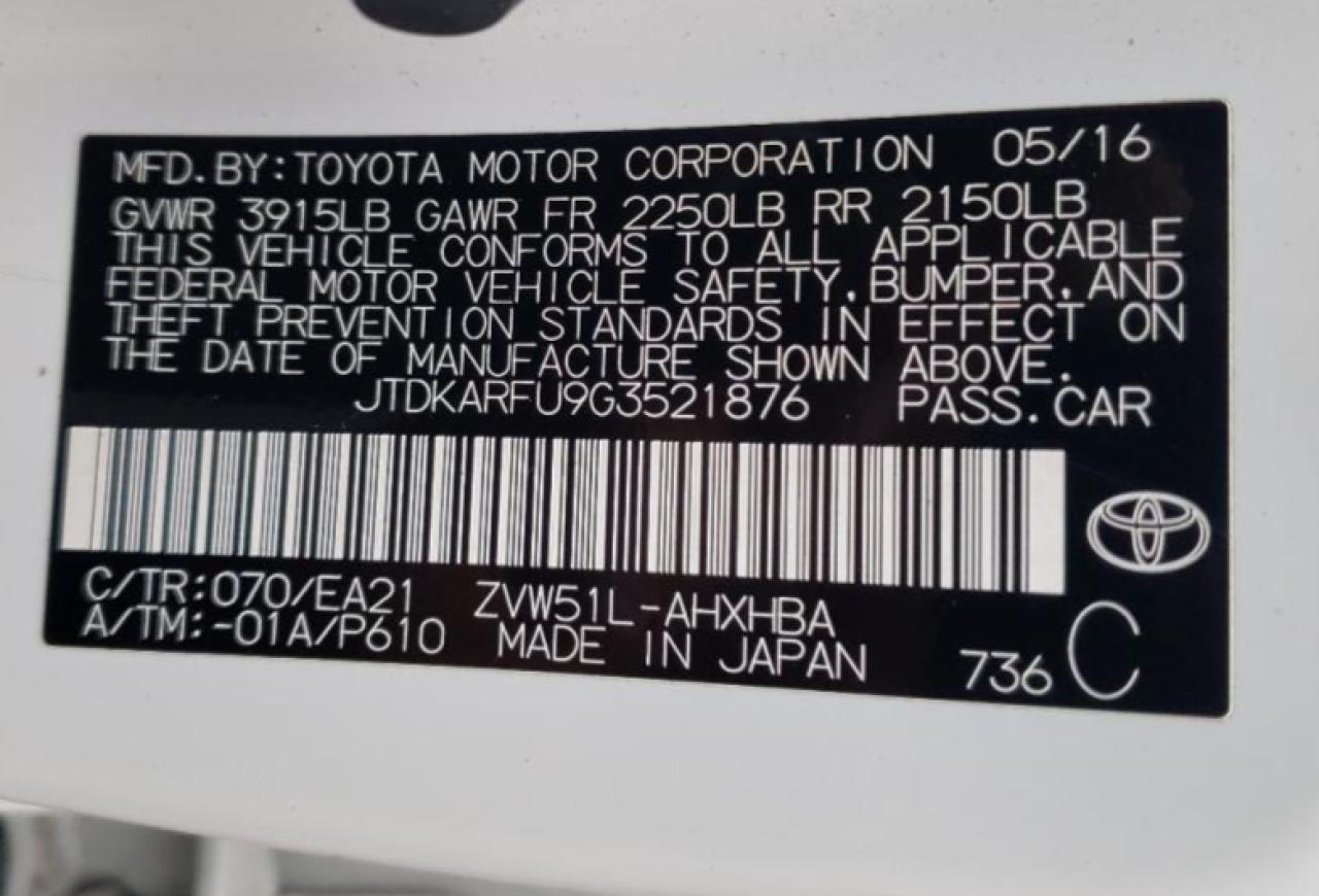 TOYOTA PRIUS 1.8 2016 р.в., (JTDKARFU9G3521876) з США