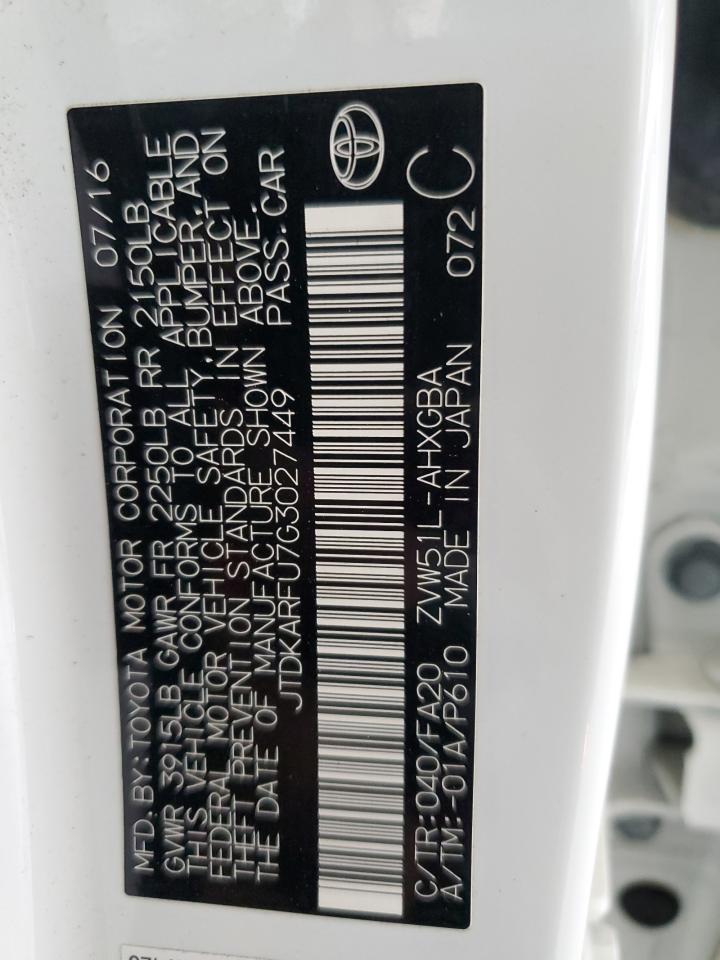 Колір БілийЦиліндри 4VIN JTDKARFU7G3027449Стан Заводиться та їде (перевірено)Ушкодження Передня або задня