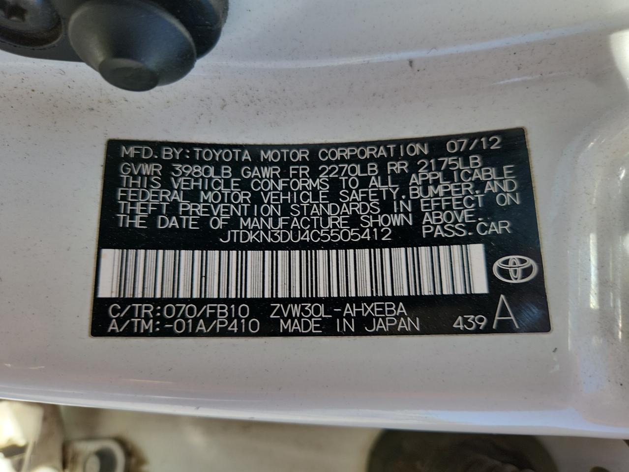 Колір БілийЦиліндри 4VIN JTDKN3DU4C5505412Стан Заводиться та їде (перевірено)Ушкодження Передня або задняДата аукціону 2025-11-10