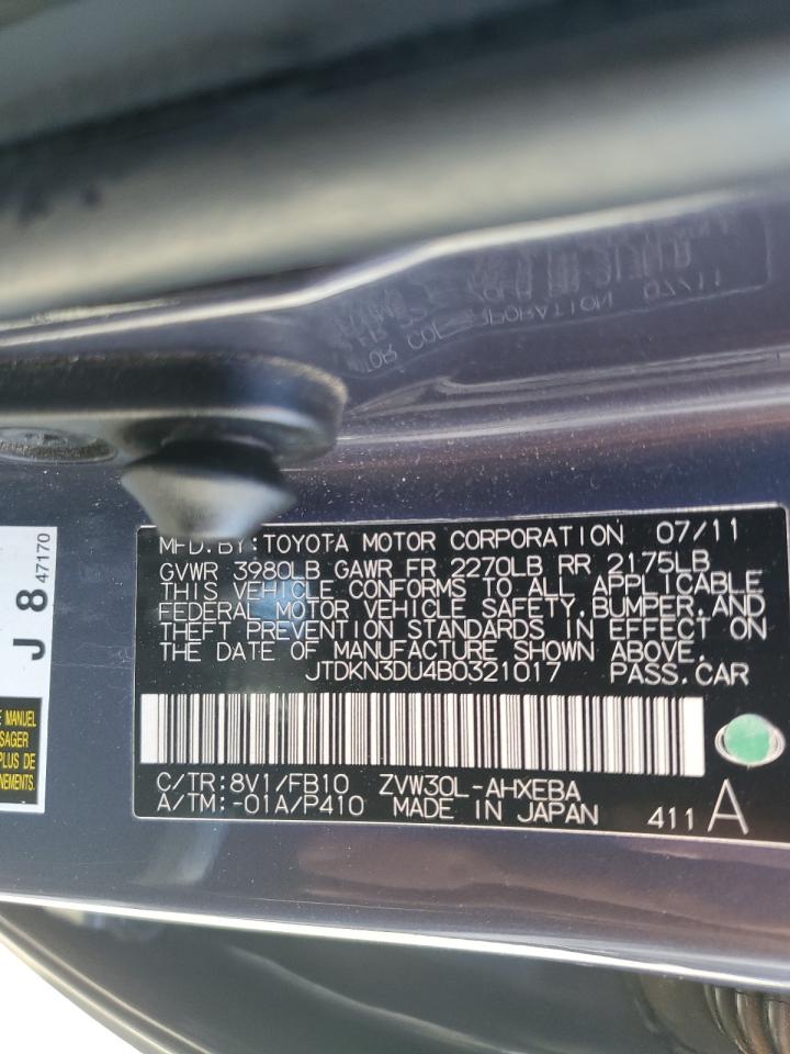 Колір СірийЦиліндри 4VIN JTDKN3DU4B0321017Стан Заводиться та їде (перевірено)Ушкодження Передня або задняДата аукціону 2025-11-03