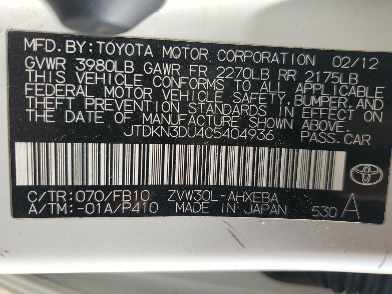 Колір БілийЦиліндри 4VIN JTDKN3DU4C5404936Стан НевідомоУшкодження Передня або задня