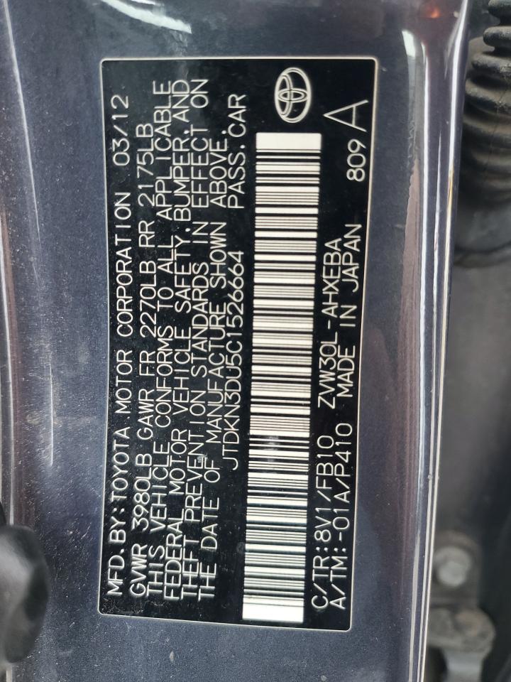 TOYOTA PRIUS 1.8 2012 р.в., (JTDKN3DU5C1526664) з США