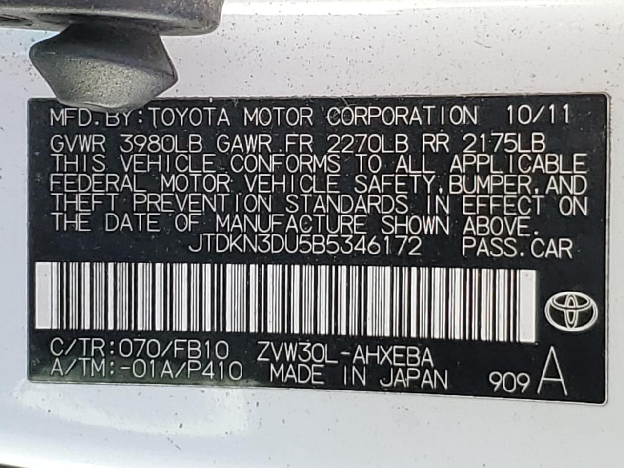 Колір БілийЦиліндри 4VIN JTDKN3DU5B5346172Стан НевідомоУшкодження Передня або задняДата аукціону 2025-11-05